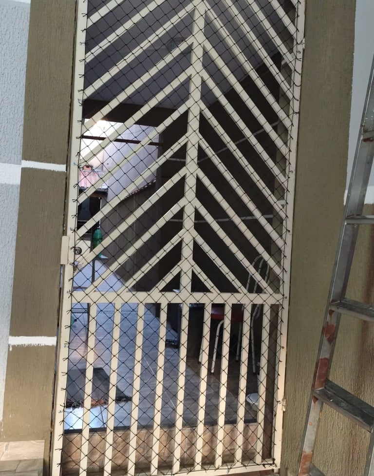 A Rede de Proteção em Portão/Porta, visa duas utilidades, o bloqueio do acesso entre 2 ambientes, e costumam ser aplicadas em portões de grades ou vazados, a razão do bloqueio é impedir que crianças pequenas e animais entrem ou saiam de certas áreas.